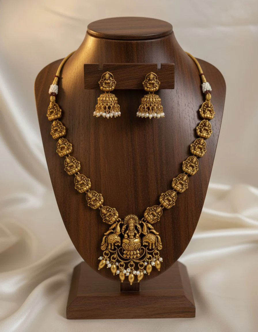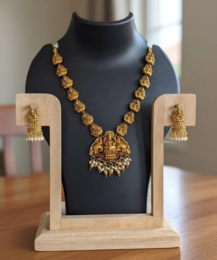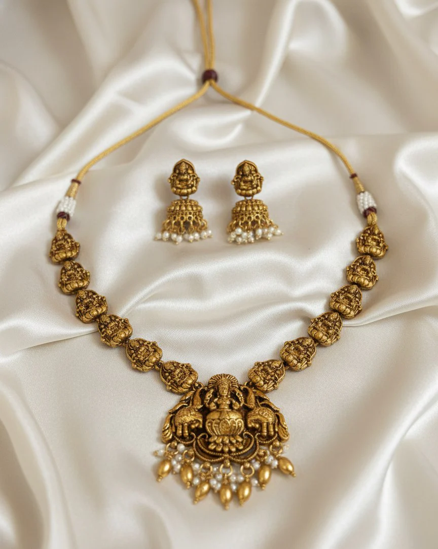 Intricately Carved Idol Lakshmi Design Bridal Set